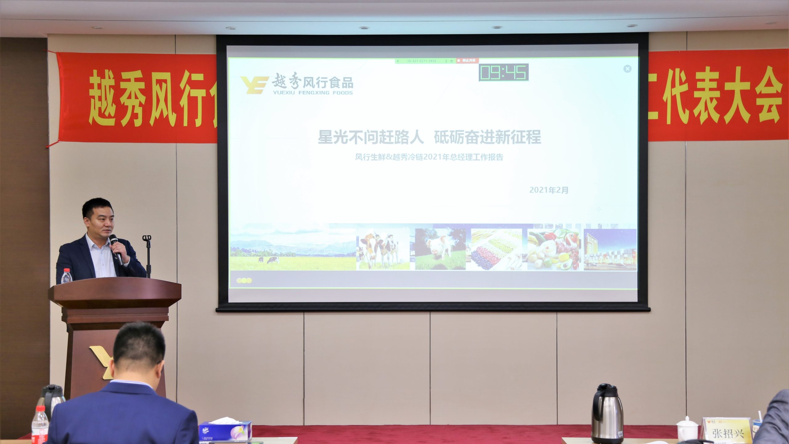 2月1日上午,越秀风行食品2021年度经济工作会议暨职工代表大会在国贸大厦13楼会议室举行。越秀集团党委书记、董事长张招兴,党委副书记、副董事长、总经理叶珊瑚出席会议并讲话,越秀集团领导及有关部门负责人到会指导。越秀风行食品党委书记、董事长林辉新作题为《强意识